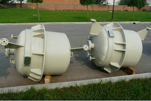 二種:Oblation纏繞工藝方法,利用玻璃鋼材料,具有一定的柔順性質,在生產車間里先纏繞成PPH聚丙烯異型設備殼體以后,在橫向上施加以一定的壓力裝上卡車運輸到使用工地,然后再恢復到原來的圓柱外形,然后再裝配成所設計的特大型玻璃鋼PPH聚丙烯異型設備。